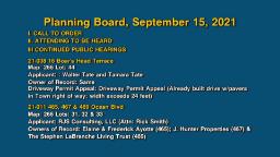 - Planning Board, September 15, 2021